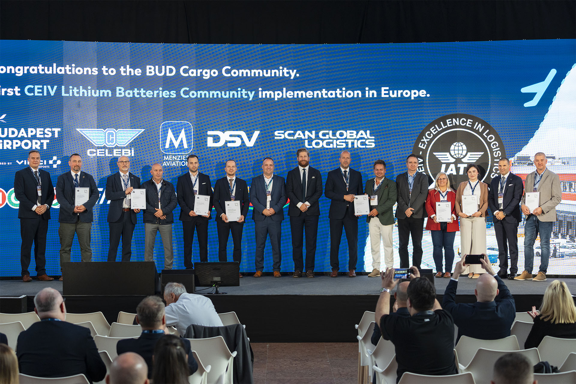 A rendezvényen a Budapest Airport egy fontos tanúsítványt is átvehetett, a vállalat cargo-csapata a kontinensen elsőként vezette be partneri összefogás révén, közösségi megközelítésben a IATA CEIV Lithium Batteries Certification-t.