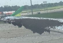 Hatalmas méhraj lepte el a Garuda Citilink légitársaság egyik Airbus A320-as szárnyát miközben a repülőgép a leszállást követően gurult a számára kijelölt állóhelyre az indonéziai Medan Airport forgalmi előterén.