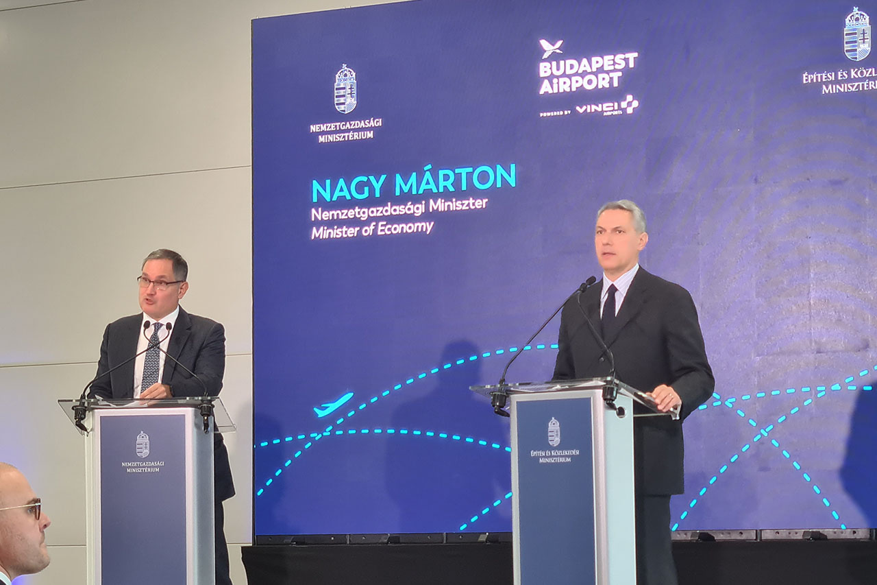 Nagy Márton elmondta, hogy a repülőtéri vasútvonalat 1 milliárd eurós (kb. 400 milliárd forintos) beruházással, koncessziós formában építik meg.
