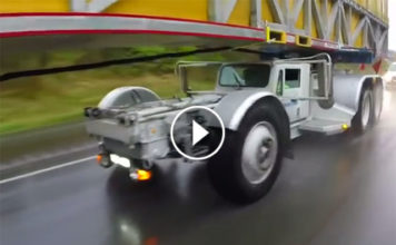 Fura szerelvénnyel szállítja a repülőgépszárnyakat a Boeing