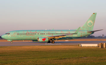 Egyenesen Dublinból érkezett a Ryanair FR 217-es járata Debrecenbe, melyet a cég egyetlen Boeing 737-700-as gépe teljesített.