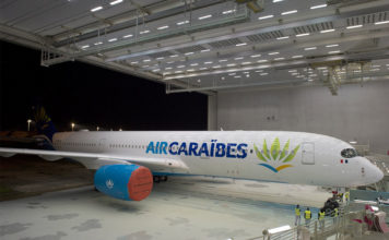 Elkészült a francia üdültető légitársaság, az Air Caraibes első Airbus A350-900 XWB repülőgépének festése.