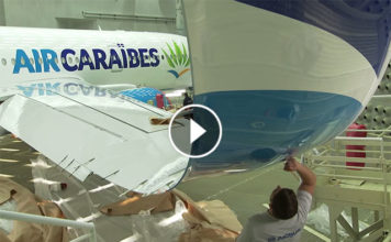 Így készítették az Air Caraibes francia üdültető légitársaság első A350-esének színpompás festését az Airbus toulouse-i gyárában.