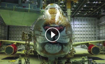 Az orosz Rossiya légitársaság egy hatalmas szibériai tigris fejet festett Boeing 747-400-asára, ezzel felhívva a figyelmet a veszélyeztetett faj védelmére.