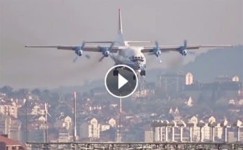 Mutatunk egy eléggé 'oroszosra' sikerült leszállást az ukrán Motor Sich légitársaság 47 éves Antonov An-12-es repülőgépével.