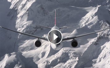 Ennél szebbet ma már biztos nem tudunk mutatni: A Swiss International Airlines Boeing 777-300ER repülőgépéről készült air to air videó az Alpok csúcsai felett.