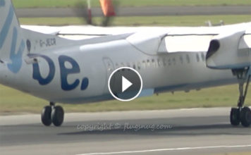 Az angol flyBe légitársaság egyik Bombardier Q400-asának leszállásáról készült felvétel.