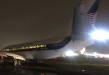 A new yorki LaGuardia repülőtéren kicsúszott a futópályáról az a Boeing 737-700-as repülőgép, mely a republikánus Donald Trump alelnök-jelöltjét szállította.