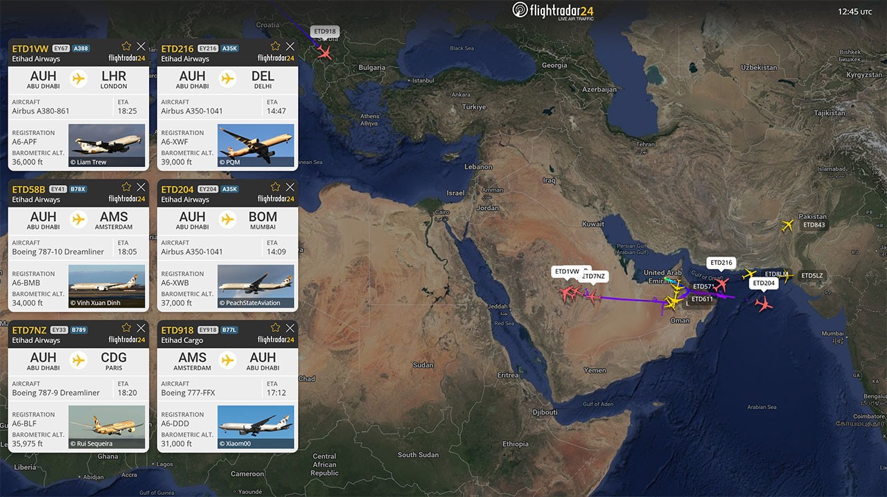 A járatok az Abu-Dzabiból végrehajtott felszállást követően a legrövidebb útvonalon elhagyják az Emírségek légterét Omán irányába, majd az Európa felé tartó járatok dél-nyugati fordulóval az eddig is használható szaúdi légtérben haladnak tovább.
