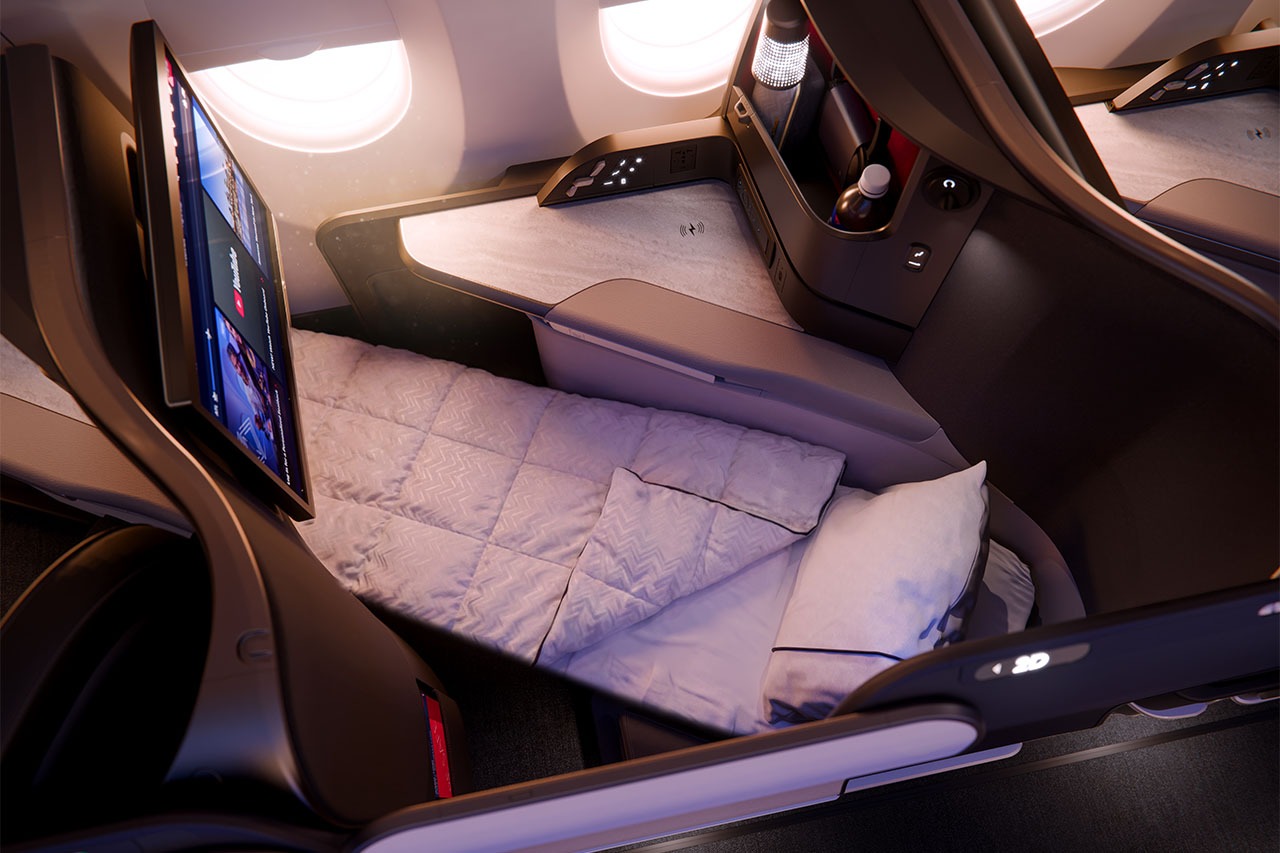 Az új üzleti lakosztályok központi eleme a hosszabb, teljesen vízszintes ággyá dönthető ülés, memóriahabos párnázattal, valamint továbbfejlesztett tárolómegoldásokkal.