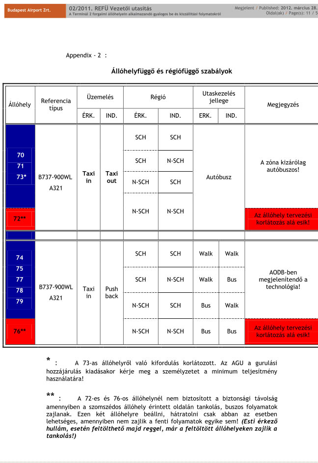 Az arepules.blogspot.com szakmai blog által közzétett REFÜ utasítás szerint a Non-Schengen utasoknak nem kell sétálni, őket buszok viszik majd. A Schengeni övezeten belül utazóknak marad a kék túra a repülőtér forgalmi előterén.